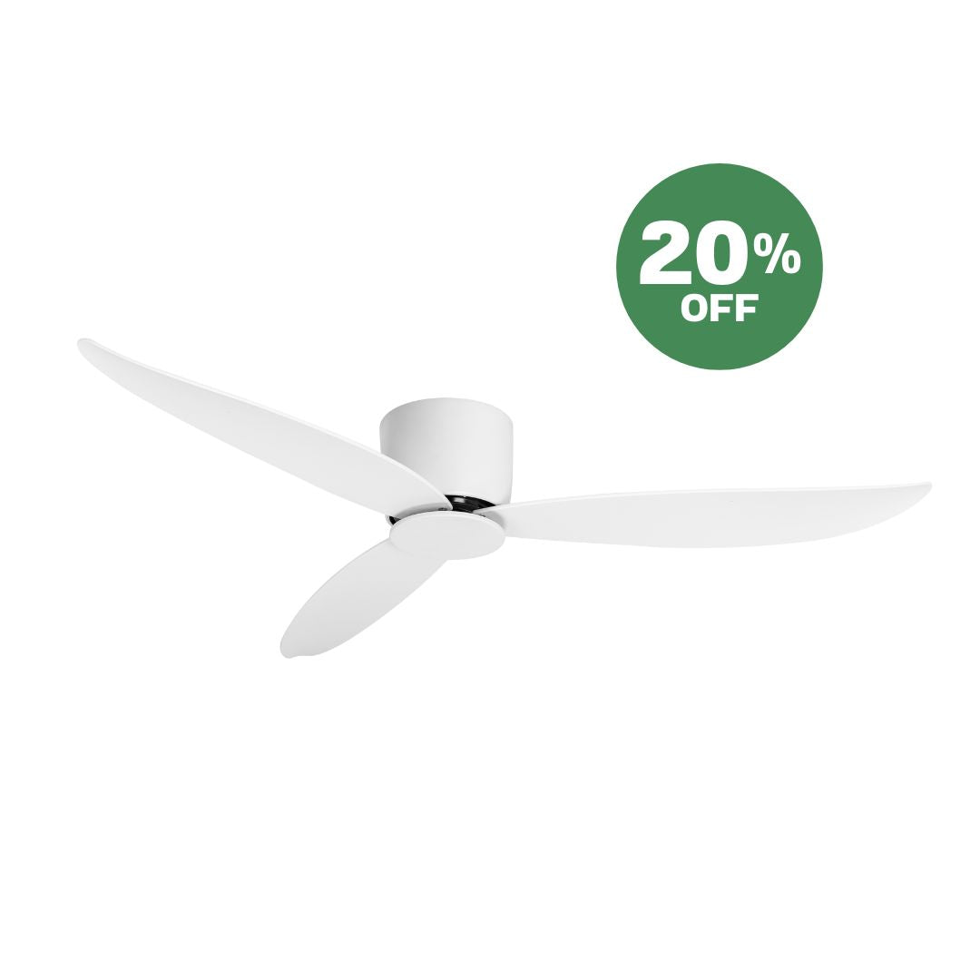 This sleek and modern ceiling fan boasts a fresh white finish that exudes contemporary elegance. The minimalist design features three expansive blades that promise efficient airflow and a refreshing breeze, perfect for any room in your home. The compact central motor is designed for quiet operation, ensuring comfort without disruption.