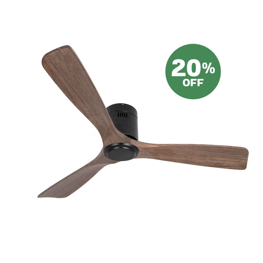 Introducing the WYND Prima Ceiling Fan: a sophisticated blend of design and performance. Featuring three sleek, wood-finish blades and a matte black housing, this fan delivers powerful airflow. Perfect for creating an uncluttered look in your modern space. Experience the merger of elegance and efficiency with WYND's latest offering.